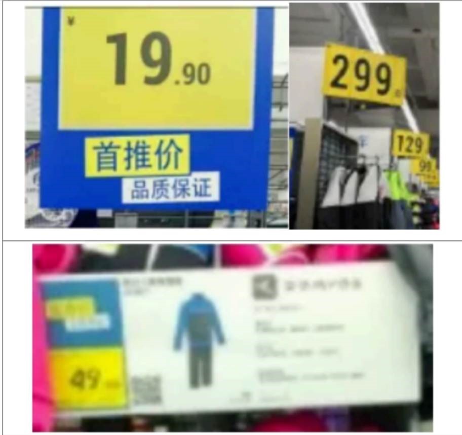 【迪卡侬在中国开设的门店店面使用蓝色背景框配白色英文字体“DECAGHLON”,或采用白色背景框配蓝色英文字体“DECAGHLON”,在上述商标中加入中文白色“迪卡侬”配蓝色背景,或采用白底配蓝色中文“迪卡侬”,标识有横版和竖版,部分店面标识下方标有“运动专业超市”字样。其立面“广告画”、PLV海报、“首推价”价格牌、产品描述牌、试鞋镜、运动海报、运动小人贴画以及货架均形成了独特的风格和特点,且在不同的店面之间统一适用,相对来说具有统一性。