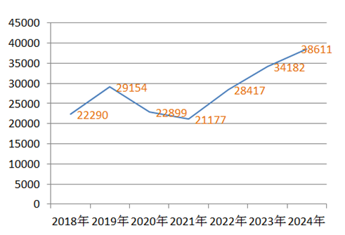 摩知輪データベースの検索結果によると、下図に示すように、『商標法』第10条全体に係る拒絶査定不服審判審決の件数は2022年から右肩上がりに増加し、2024年には38,611件に達し、同年の拒絶査定不服審判審決の総件数の14.8%を占めている。これは、商標審査において、商標法第10条に係る絶対的禁止事由に対する審査が持続的に強化されていることを反映している。